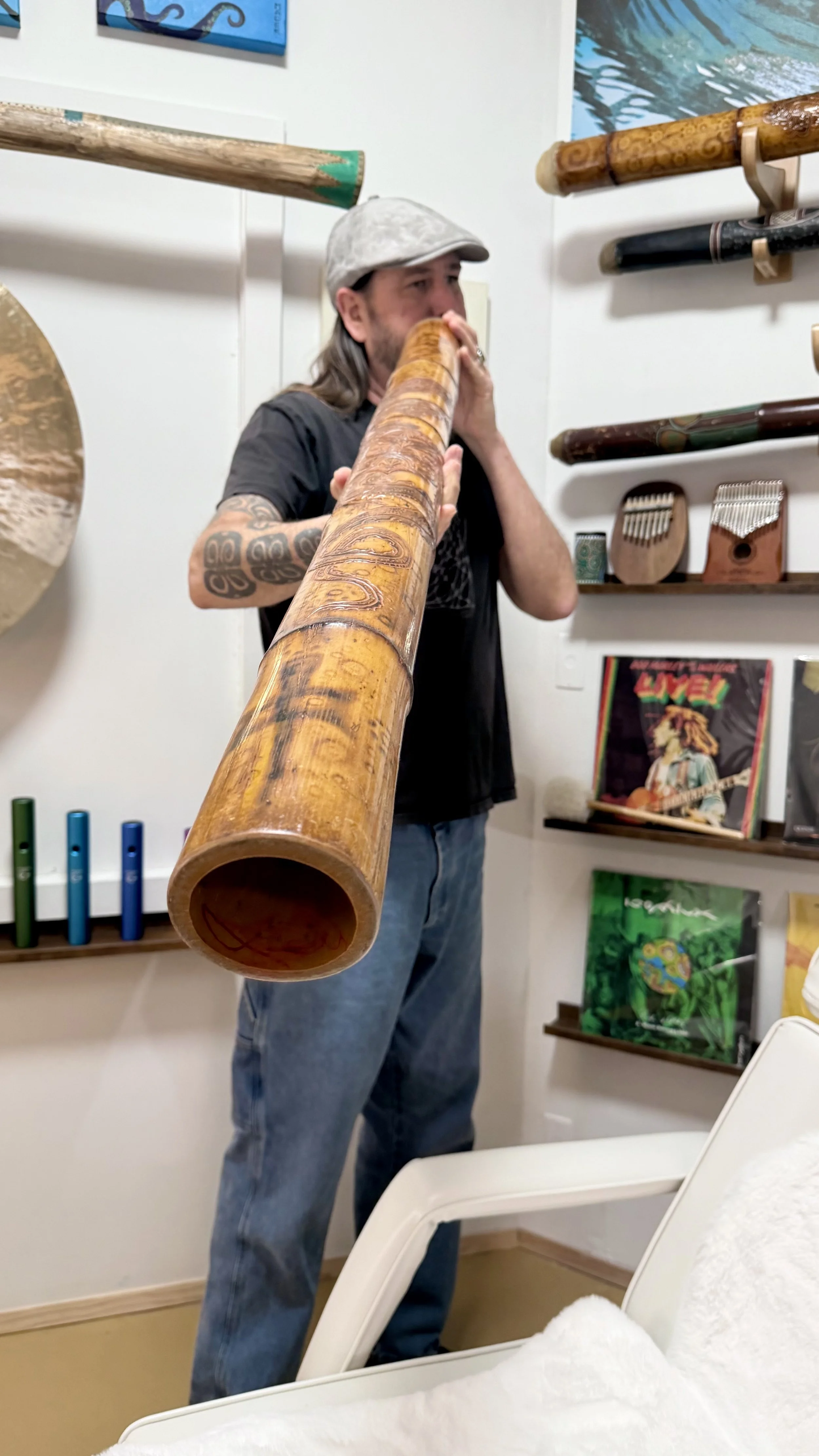Madek creates a sacred and intimate environment tailored to your personal energetic needs. Using a powerful combination of didgeridoo, tuning forks, gong, Native American flute, and Koshi chimes, along with his own recorded compositions, Madek weaves together a tapestry of sound that gently guides you into states of deep relaxation and rejuvenation.